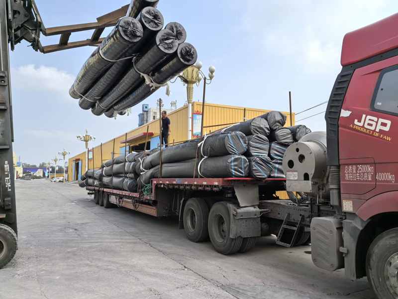 按規劃尺寸裁切土工膜/土工布并運至施工現場